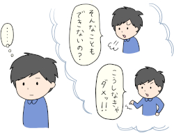 それを見て親は、厳しさが足りなかったと思い、もっときつく怒ります。